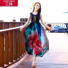 2. 图案设计:长裙上印有精美的图案,如莲花、牡丹等,寓意吉祥如意,同时也增添了长裙的层次感。