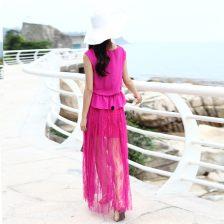 1. 搭配上衣:吃瓜丝绸长裙可以搭配T恤、衬衫等简约上衣,展现清新脱俗的气质。
